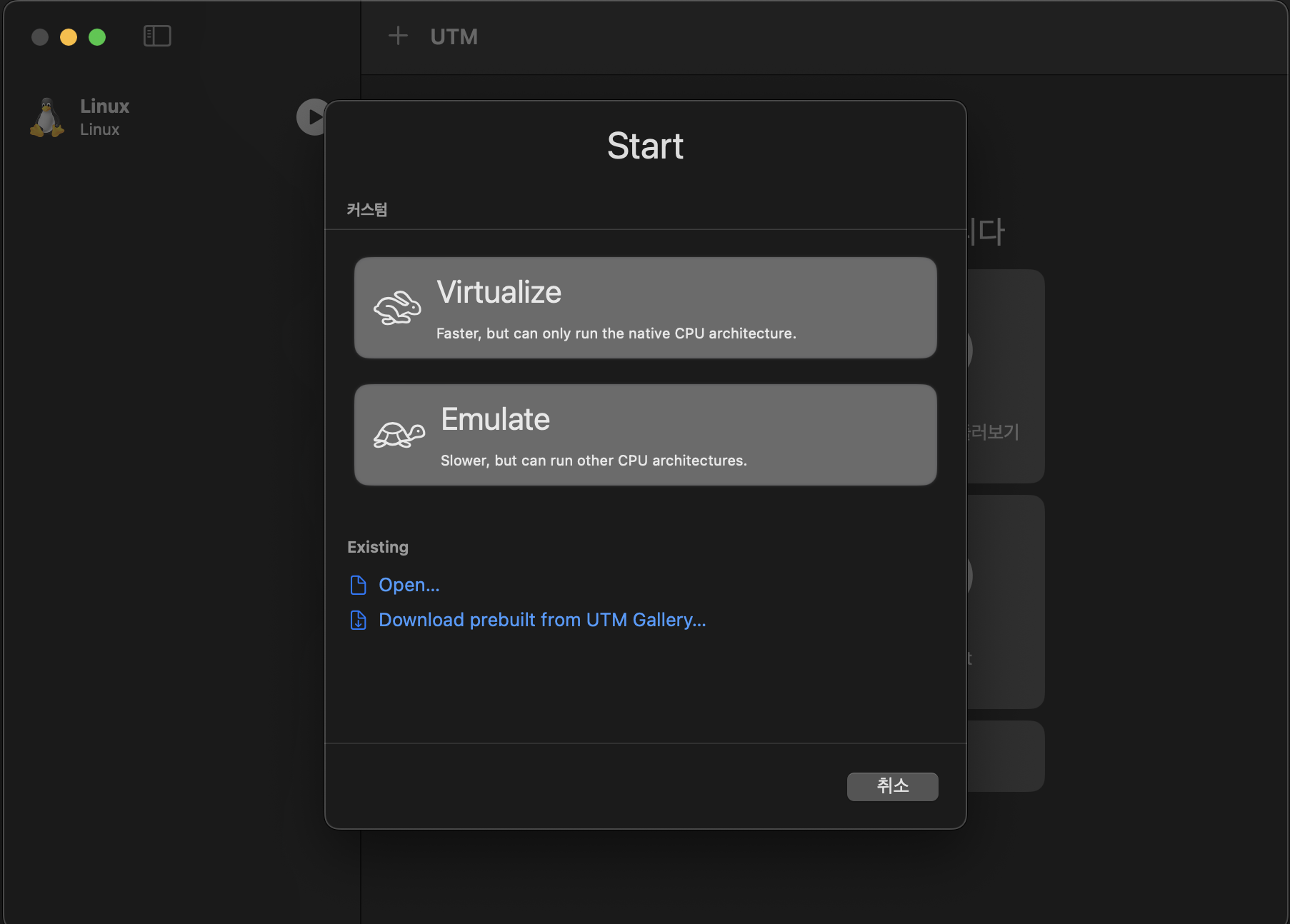 “새 가상 머신 만들기” 클릭 후 Virtualize 선택
